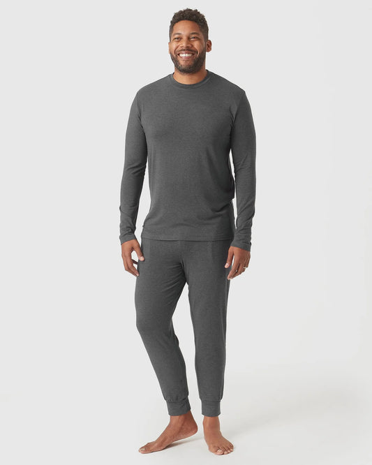 Kullgrå melert langermet loungewear-T-skjorte