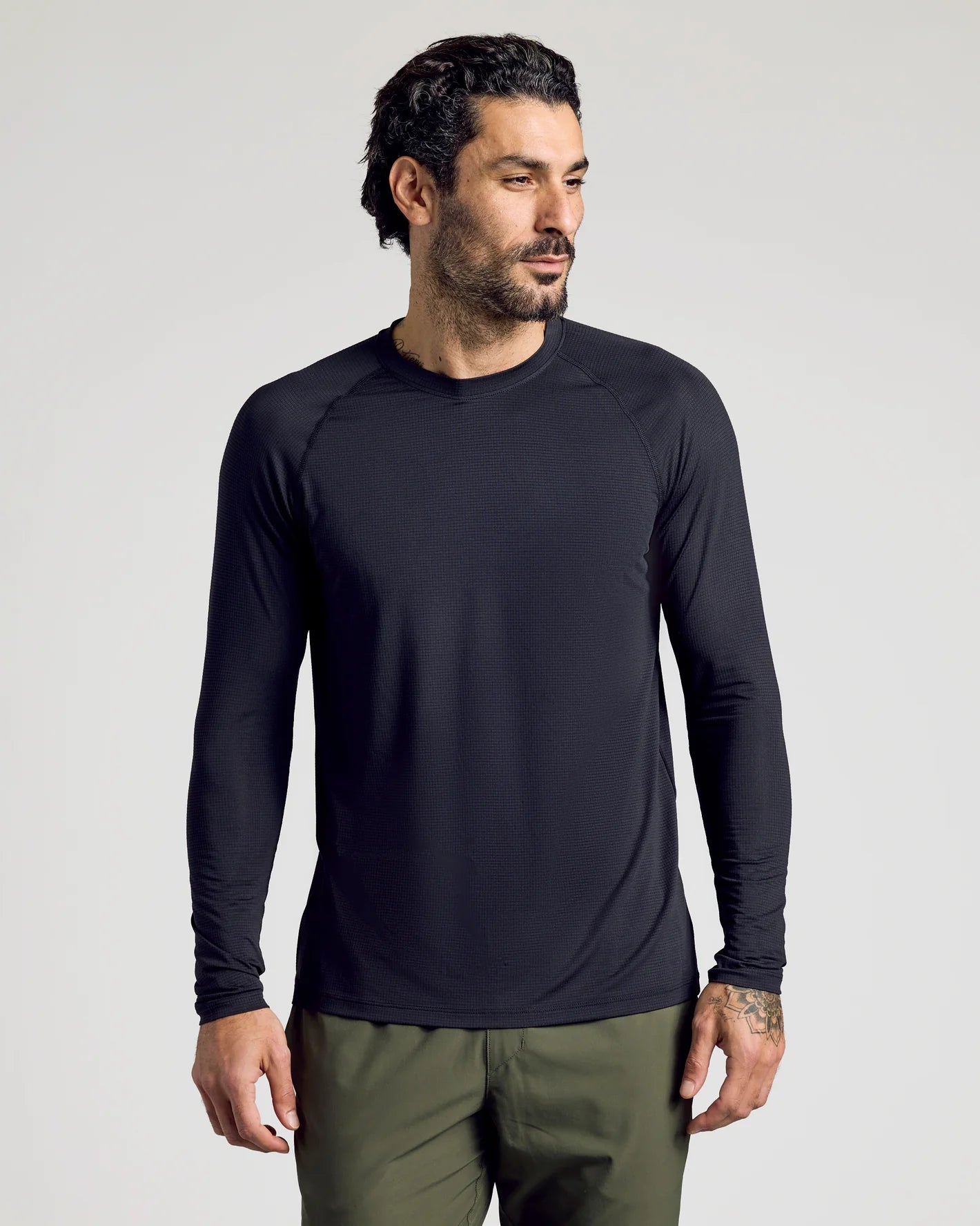 Teknisk mesh som holder følge med hver repetisjon, strekk og steg. Designet for lufting, bevegelse og svettefylte dager – denne langermede t-skjorten tar komfort og ytelse til neste nivå.