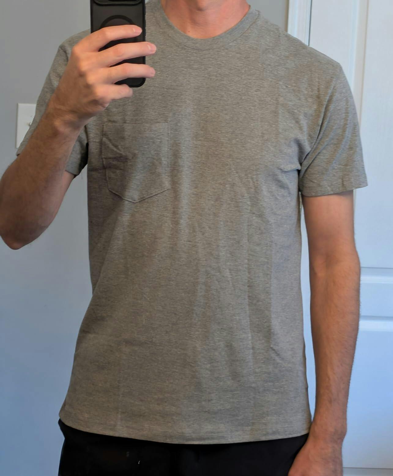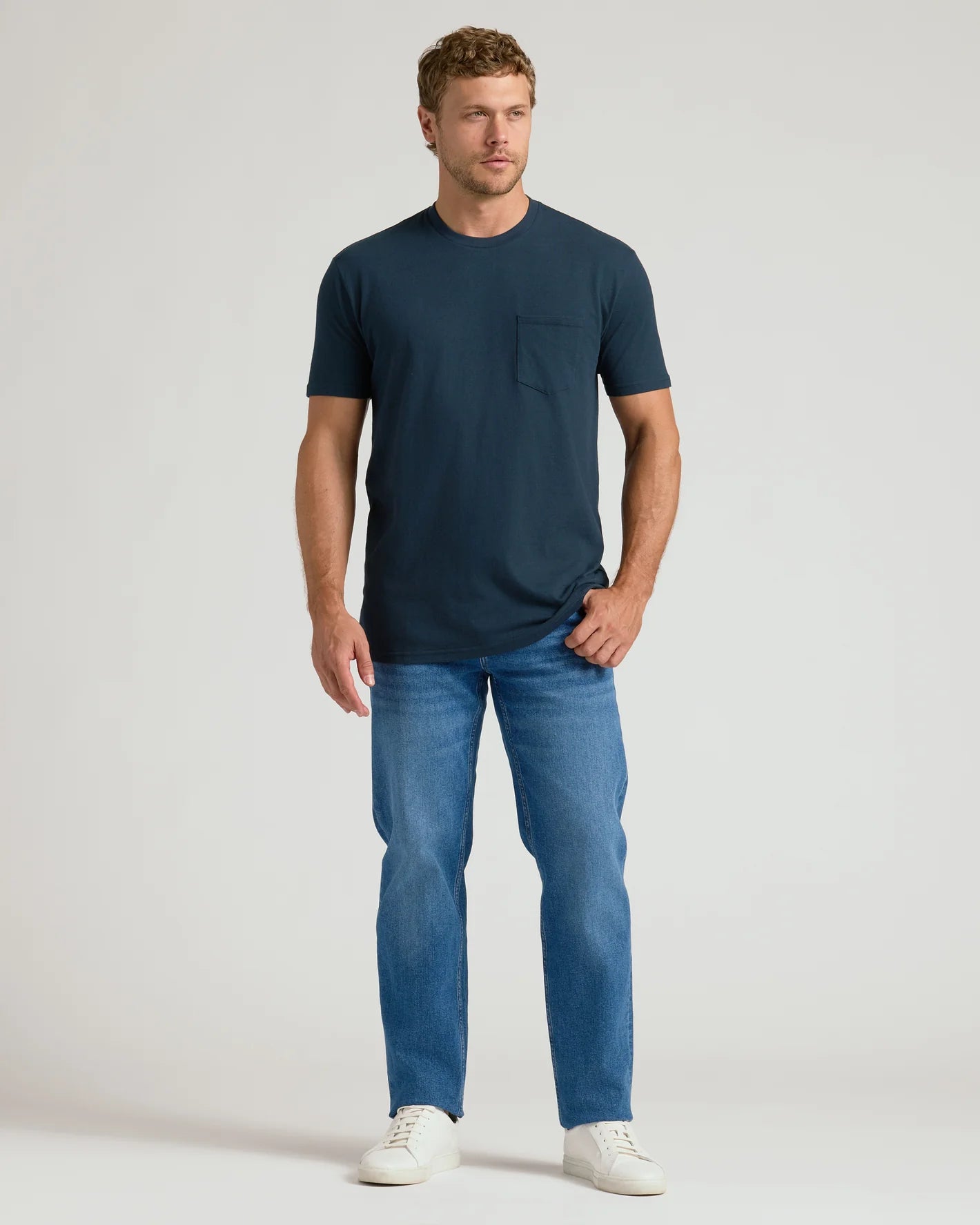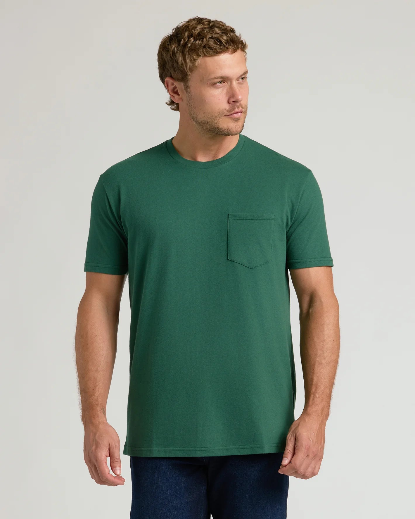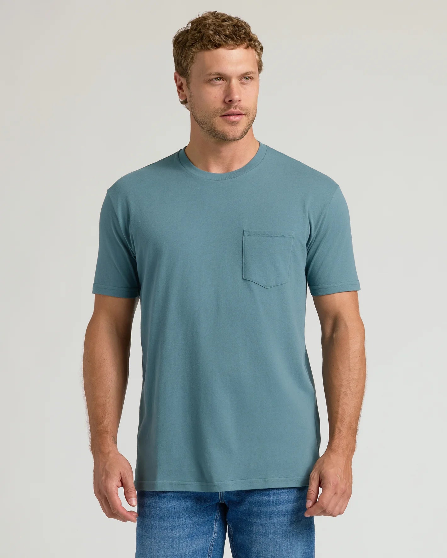 En tidløs T‑skjorte, oppdatert med brystlomme og en moderne, skreddersydd følelse. Myk, allsidig, og laget for daglig bruk – fra jobbmodus til helgerestitusjon.