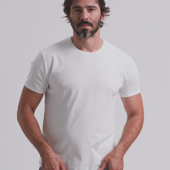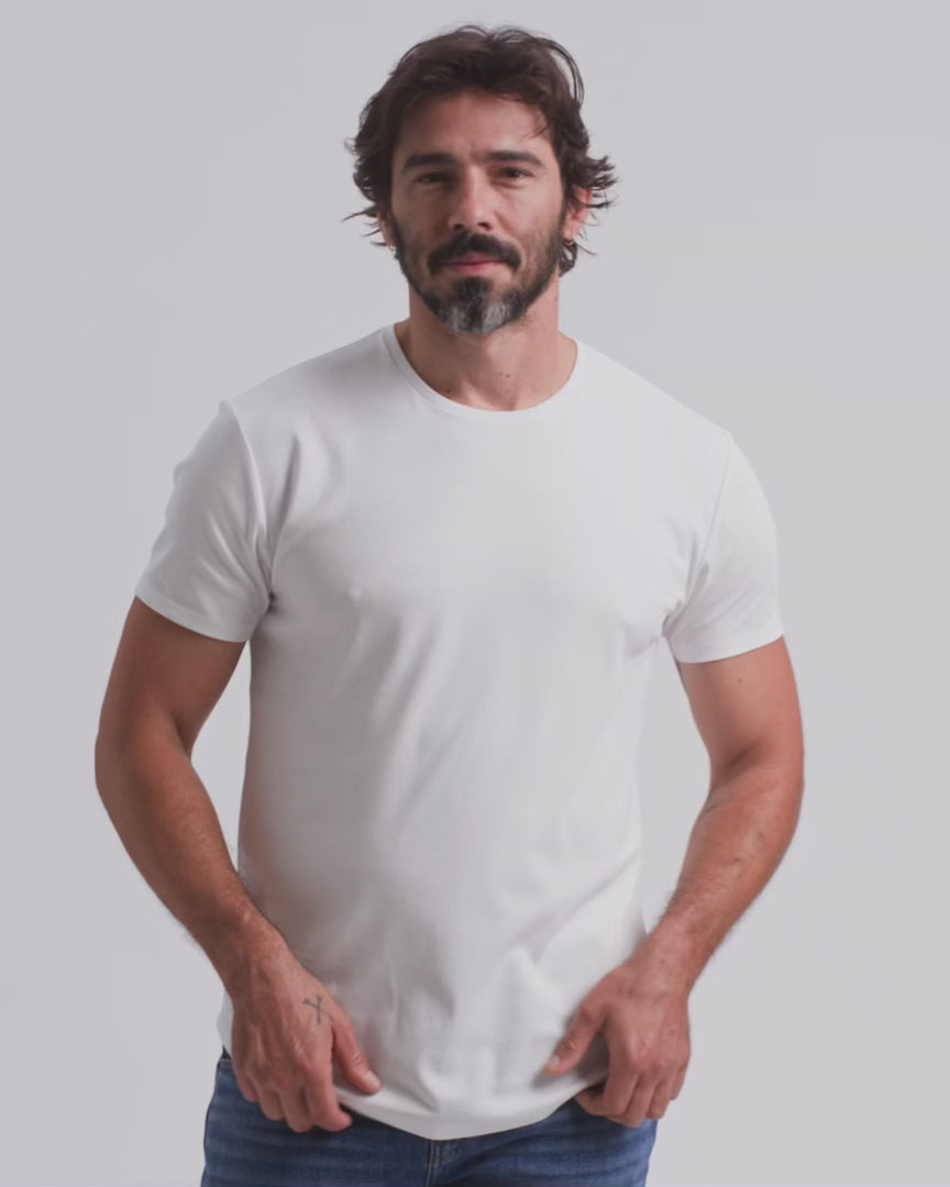 100 % silkeaktig Pima-bomull møter vår signaturpassform som sitter rundt biceps, med en stilfull buet kant—fordi vi aldri lager